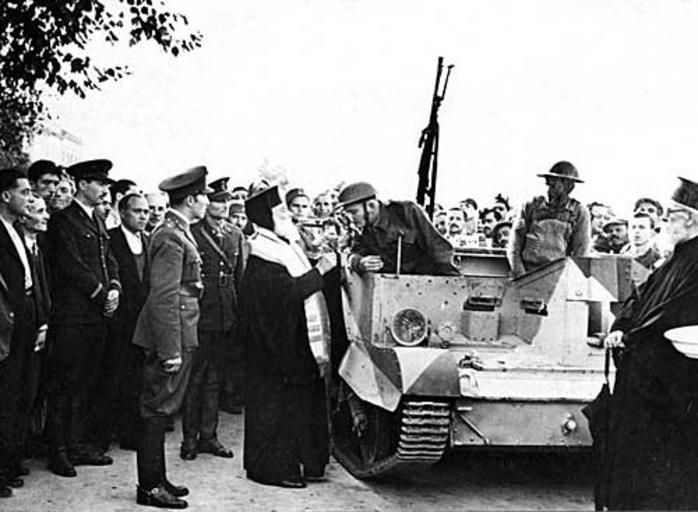 | Keywords: BritisharmyinCrete.jpg British soldiers receive a blessing from the Bishop of Hania Crete December 1940 Australian war memorial Author PD-Australia Crete in World War II Battle of Greece World War II British Army vehicles camouflage schemes Black and white photographs of Greece December 1940 in Greece |