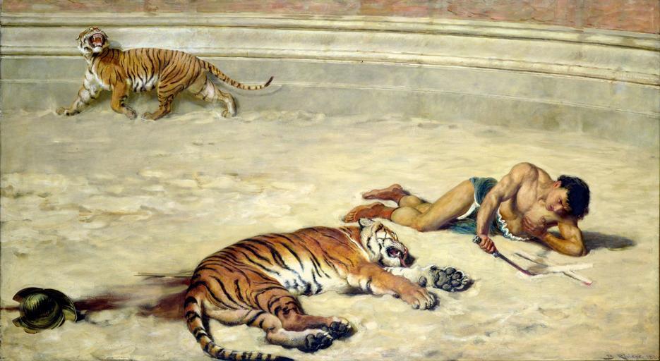 | Keywords: Briton Rivière - A Roman Holiday (National Gallery of Victoria).jpg Artwork Creator Briton Rivière 1881 Oil on canvas cm 99 5 178 2 Institution National Gallery of Victoria object history credit line 114845 PD-old-auto-1923 1920 DEFAULTSORT Riviere Briton; A Roman Holiday; National Gallery of Victoria Briton Rivière Way of life in ancient Rome Paintings of tigers 1881 paintings Damnatio ad bestias British paintings in the National Gallery of Victoria Riviere | ||||