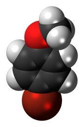 Keywords: Bromoanisole-3D-spacefill.png Space-filling model of the bromoanisole molecule Colour code 505050 Carbon C black<br> F0F0F0 Hydrogen H white<br> F51E1E Oxygen O red<br> B42814 Bromine Br red-brown<br> 2011-06-10 own DS Visualizer Jynto talk Ball-and-stick version cc-zero Haloanisoles Bromobenzenes Images by Jynto Space-filling models |