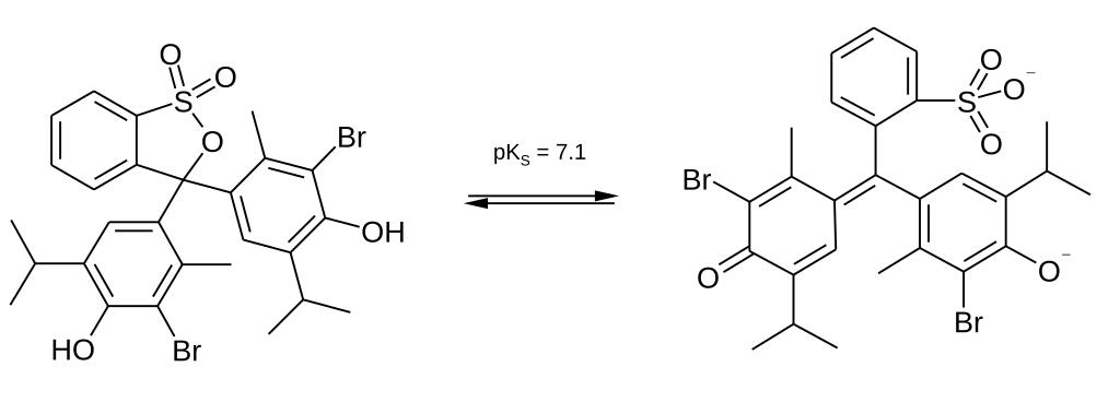 Keywords: Bromothymol blue protolysis.svg en Bromothymol blue - protolysis equilibrium de Bromthymolblau - Protolysegleichgewicht own Steffen 962 2011-05-11 PD-chem Cc-zero Bromothymol blue