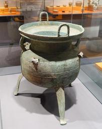 | Keywords: Bronze ding tripod with dished mouth, two lugs, and four frogs design, Han dynasty, from Tuodong, Yunfuxian - Hong Kong Museum of History - DSC00811.JPG en Exhibit in the Hong Kong Museum of History Hong Kong This artwork is old enough so that it is in the public domain Photography was permitted in the museum without restriction 2014-07-27 01 40 42 own Daderot other versions PD-100 cc-zero Bronze of China in the Hong Kong Museum of History Uploaded with UploadWizard | ||||