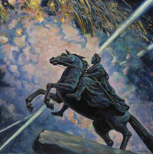 | Keywords: Bronze Horseman by Kustodiev.jpg  Бо ис Кустодиев Салют  едный всадник Ка тон масло Лот выставленный на  усских то ах Sotheby s в  ью-Йо ке с эстимейтом 3 4 млн  е п одан © Sotheby s 2011 год http //www artguide ru/ru/news/110 20 век Б Кустодиев Paintings by Boris Kustodiev The Bronze Horseman in art Private collections of Russian art PD-Art  |