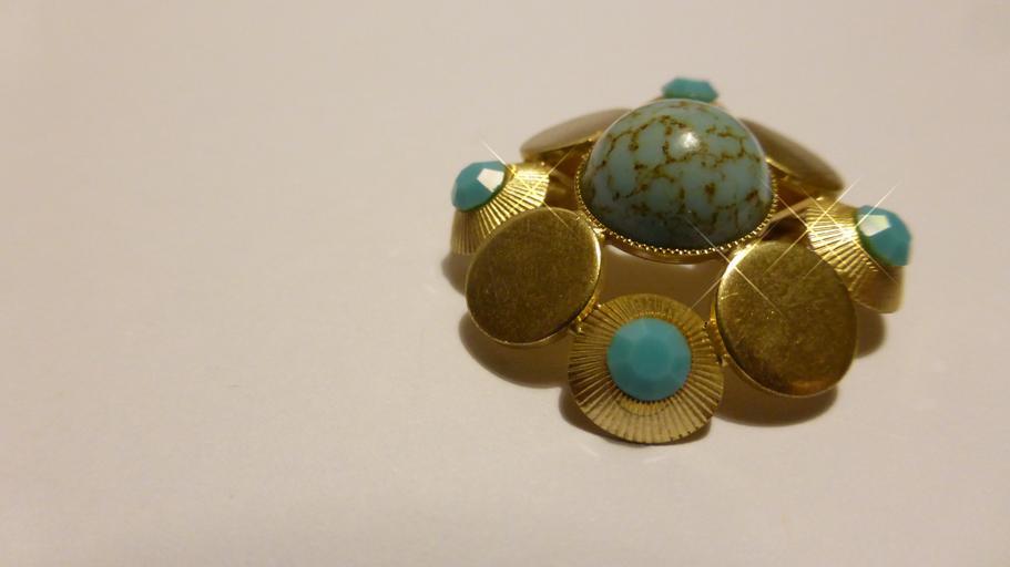 Keywords: brooch jewellery fashion jewelry gold turquoise badges shiny woman female ornament beauty decorate
