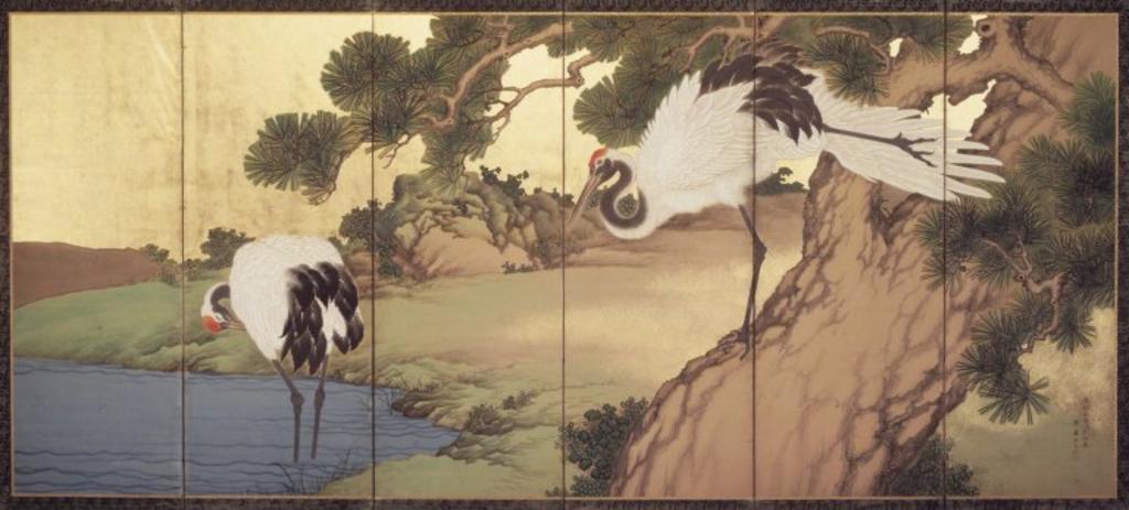Keywords: Brooklyn Museum - Cranes and Pines - Yokoyama Kazan.jpg Artwork Creator Yokoyama Kazan Cranes and Pines 1836 six-panel screen<br> opaque watercolor ink gold paper cm 169 6 365 8 Institution Brooklyn Museum Brooklyn Museum location asia Artwork-provenanceorcl gift the Asian Art Council http //www brooklynmuseum org/opencollection/objects/160581/Cranes_and_Pines Online Collection of Brooklyn Museum; Photo Brooklyn Museum 1999 97_transp4782 jpg 1999 97 Brooklyn_Museum-no_known_restrictions PD-old-100 Yokoyama Kazan Watercolor paintings of landscapes Art of Japan in the Brooklyn Museum Cranes in Japanese art Pines in art 1836 watercolor paintings |