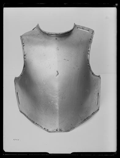 | Keywords: Bröstharnesk, karolinsk typ 1600-talets slut - Livrustkammaren - 27955.tif LSH artwork sv Av stål drivet i ett stycke utsidan blankpolerad och insidan brunsvart av korrosion med tydliga slagmärken <br/>Rak och stram form Tämligen framåtsluttande axlar B 86 mm Svag mittås med början ca 45 mm under halskragen ner till nedre kant Under halskragen inslagen otydlig stämpel möjligen P inom fyrkant Rundade urtagningar för hals och armar kanterna omvikta utåt och rundsmidda Nedre kant likaså med i mitten urtagning L 70 mm Halskanten utsmidd till en krage H i mitten 23 mm <br/>Rektangulära hål L 47-50 mm vid axlar och nertill i sidorna Parvis satta hål runt armurtag och längs nedre kant Inslagen stämpel i form av en krona på insidan strax innanför vänster armurtag original caption end other date century 17 steel g 6606 size mm 365 410 140 LRK place of origin SE original filename LN_E01479 59055 inventory number LRK 22493 27955 CC0 Bröstharnesk karolinsk typ 1600-talets slut - Livrustkammaren - 27955-negative tif Breastplates Media contributed by LSH 2015-11 |