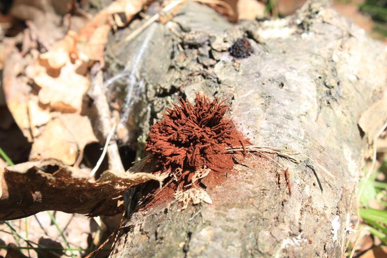 Keywords: brown chocolate fungi fungus hairs pipe sporing stemonitis tube mushroom fungi