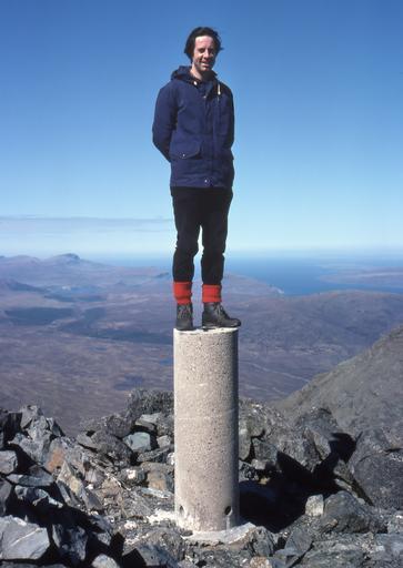 | Keywords: Bruach na frithe cairn arp.jpg  Bruach na Frithe summit pillar the Cuillin Isle of Skye Scotland in 1976 Photographed for Adrian Pingstone that ™s me in the picture and released to the public domain 2008-10-31 own assumed Arpingstone Bruach na Frìthe 1976 in Scotland |