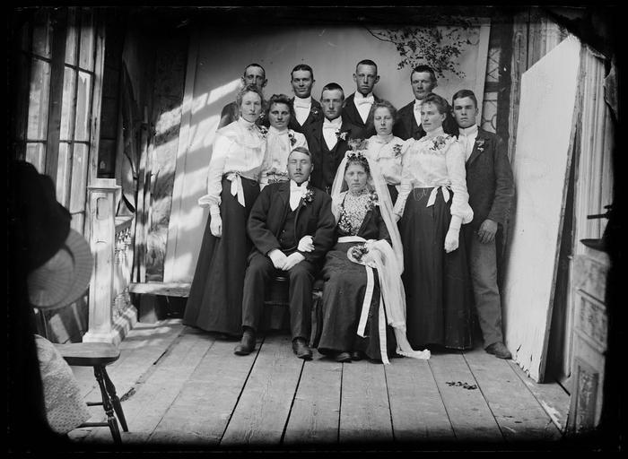 | Keywords: Brudparet Olinus och Berta Nilsson med familj och bröllopsgäster - Nordiska Museet - NMA.0028324.jpg Artwork sv Brudparet Olinus 1876-1949 från Södra Brändan i Transtrand och Samils-Berta Karolina Nilsson 1883-1965 Brudparet med familj och bröllopsgäster Det berättas att det var ett storbröllop och att bruden som ursprungligen kom från Samilsgården i Husom bar kronan i dagarna tre Bröllopet hölls den 17 juni 1904 Bilderna är tagna dag två Brudparet Olinus och Berta Nilsson med familj och bröllopsgäster Det berättas att det var ett storbröllop och att bruden som ursprungligen kom från Samilsgården i Husom bar kronan i dagarna tre Bilderna är tagna dag två <br /> Ämnesord Livets högtider Bröllop / Vigsel photograph Institution Nordiska museet object history credit line accession number NMA 0028324 Nordiska museet cooperation project PD-Old Images from Nordiska museet NMA 0028324 Images from Nordiska museet/check NMA 0028324 Wedding ceremonies in Sweden Lars Olsson Åkerman Black and white photographs of groups Group portraits with 12 persons 1900s portrait photographs June 1904 in Sweden People of Sweden in 1904 Black and white photographs 1904 weddings |