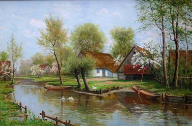 | Keywords: Bruno Moras - Kanal im Spreewald im Frühling.jpg  Artwork Creator Bruno Moras oil canvas cm 79 119 object history credit line accession number http //www lot-tissimo com/de/i/2769885 PD-old-auto 1939 Bruno Moras Spreewald in art Spring landscape paintings Paintings of German villages |