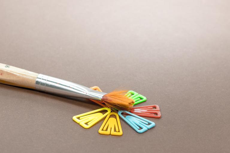 | Keywords: brush paint colorful art color watercolour painting watercolour painting watercolor painter draw image artwork hair brush still life brush bristles office brush hair paper clips tacks macro datailaufnahme close macro photo stationery items mess clip office accessories |