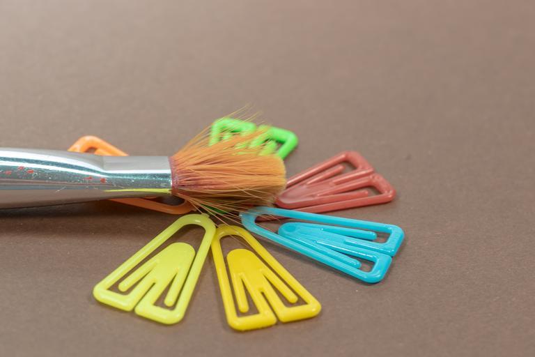 | Keywords: brush paint colorful art color watercolour painting watercolour painting watercolor painter draw image artwork hair brush still life brush bristles office brush hair paper clips tacks macro datailaufnahme close macro photo stationery items mess clip office accessories |