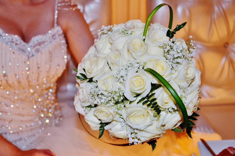 Keywords: bucet bouquet flower rose nature leaf white green wedding roses bridesmaid hand ring couple people love heart
