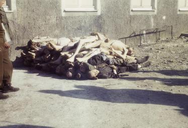 Keywords: Buchenwald Corpses 60626.jpg A pile of corpses stacked outside the crematorium in the newly liberated Buchenwald concentration camp Lieutenant Colonel Parke O Yingst was born in Hummelstown PA in 1908 In 1930 he graduated from the Colorado School of Mines and joined the Army Corps of Engineers as a reservist He subsequently went to work in Venezuela During this period his reserve commission expired After returning to the United States in 1940 Yingst applied for recommissioning so that he could join the fight against Hitler In 1942 he was ordered to active duty as a First Lieutenant in the Army Corps of Engineers On April 4 1944 he was promoted to Major and in July he assumed command of the 281st Engineer Combat Battalion In April 1945 Yingst was present at the liberation of the Ohrdruf and Buchenwald concentration camps He was eventually promoted to Lieutenant Colonel prior to his separation from the army for medical reasons Photographed by Colonel Parke O Yingst Buchenwald Thuringia Germany 16 April 1945 http //www ushmm org/ United States Holocaust Memorial Museum courtesy of Patricia A Yingst PD-USGov Corpses in Buchenwald concentration camp Images from the United States Holocaust Memorial Museum World War II color photographs in Germany April 1945 in Germany Piles of human corpses Body parts of murdered during the Holocaust |