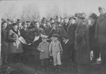 | Keywords: Buchenwald DP Service 09559.jpg Jewish DPs attend a memorial service in the Buchenwald concentration camp The little boy in the concentration camp uniform may be Joseph Schleifstein Josef Janek Szlajfaztajn later Joseph Schleifstein is the son of Izrael and Esther Schleifstein He was born on March 7 1941 in Sandomierz Poland during the German occupation The family remained in Sandomierz through its existence as a ghetto from June 1942 through January 1943 After the liquidation of the ghetto the family was moved to Czestochowa where Israel and Esther were presumably put to work in one of the HASAG factory camps During this period Joseph was placed in hiding in the area Israel was sent to work for the Letzium Work Camp in the Radom District working for a firm called Ralnik from October 1942 till September 1943 He worked in Makashin near Sandomierz from September till December 1943; in a HASAG ammunition factory in Kielc from December 1943 to approximately November 1944; and for a short time in Czestochowa In January 1945 when the HASAG camps were closed and their operations transferred to Germany the Schleifsteins were deported to Germany Esther was sent to the Bergen-Belsen concentration camp Izrael and Josef were taken to Buchenwald and arrived on January 20 1945 Izrael successfully passed the selection process by concealing Josef in a large sack in which he carried his leather-working tools The child could not remain concealed for long in the camp but his life was spared in part because the Germans valued Israel's craftsmanship and in part because they took a liking to the child The SS guards came to treat Joseph as a camp mascot and even had him appear at roll calls wearing a child-sized striped uniform Despite this special treatment Joseph remembers being lined-up for execution at one point and his father intervening at the last moment to save him He also remembers being very sick during his imprisonment and living in a hospital for a time Soon after their liberation in Buchenwald Israel and Josef were taken to Switzerland for medical treatment Some months later they were reunited with Esther in Dachau where they lived until emigrating to the U S in 1947 Buchenwald Thuringia Germany circa 1946 http //www ushmm org/ United States Holocaust Memorial Museum PD-USGov Images from the United States Holocaust Memorial Museum HASAG Buchenwald children |