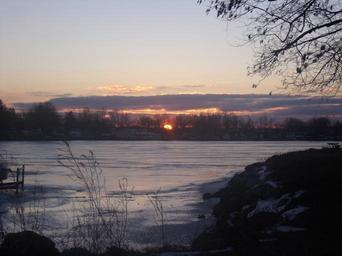 Keywords: Buckeye Lake sunset.JPG en Sunset from Fairfield Beach Ohio own Ibagli 2009-01-31 Walnut Township Fairfield County Ohio Sunsets of Ohio Pink sunsets Lakes of Ohio Frozen lakes of the United States Lakes at sunset