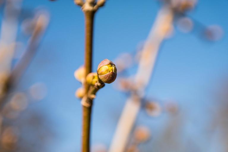 Keywords: bud spring cornel flower bud branch road frisch young tender live sky yellow blue birth