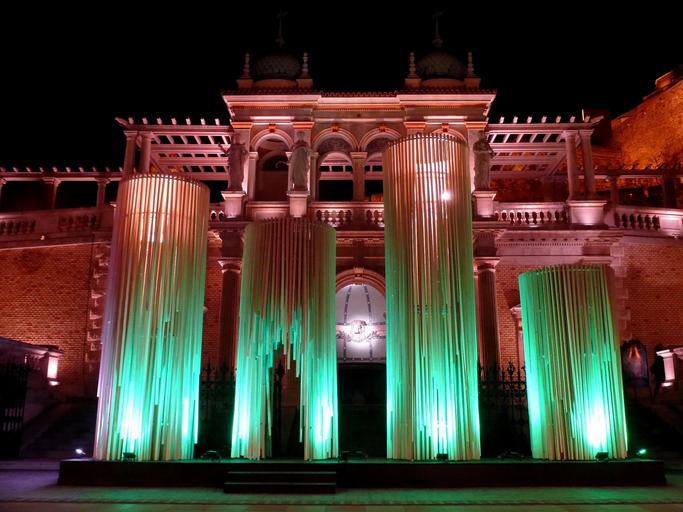Keywords: budapest hungary castle garden várkertbazár installation light in the evening entrance