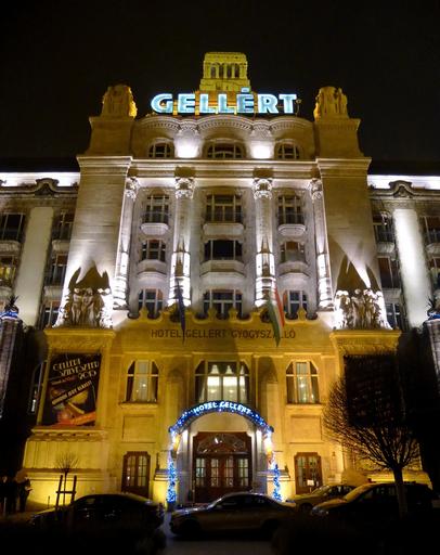 Keywords: budapest hungary gellert hotel building art nouveau in the evening light
