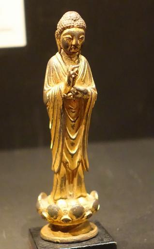 | Keywords: Buddha on a lotus flower, China, Tang dynasty, 618-906 AD, gilded bronze - Östasiatiska museet, Stockholm - DSC09607.JPG en Exhibit in the Östasiatiska museet Stockholm Sweden This artwork is old enough so that it is in the public domain Photography was permitted in the museum without restriction 2014-09-13 07 12 55 own Daderot other versions cc-zero Metalwork of China in Östasiatiska museet Uploaded with UploadWizard | ||||