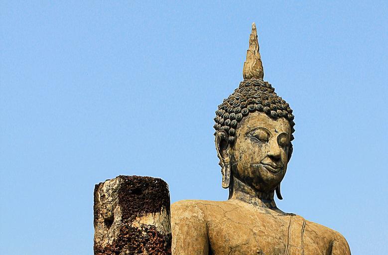 Keywords: buddha stone buddha head temple sky grey thailand asia