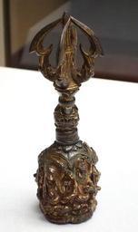 | Keywords: Buddhist ritual bell, five-pronged vajra handle featuring images of five vidyarajah, China, Tang dynasty, 8th century, gilt bronze - Tokyo National Museum - DSC05196.JPG en Exhibit in the Tokyo National Museum Tokyo Japan This artwork is old enough so that it is in the public domain 2013-09-02 21 41 46 own Daderot PD-100 cc-zero Metalwork in the Tokyo National Museum Uploaded with UploadWizard Vajra bells | ||||
