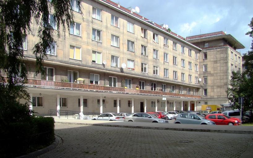 Keywords: Budynki mieszkalne NBP 02.jpg en NBP housing estate Warsaw pl Osiedle mieszkaniowe NBP ul Boya-Żeleńskiego arch Bohdan Pniewski own self-made photograph Szczebrzeszynski 2009-08-18 NBP Housing estate in Warsaw