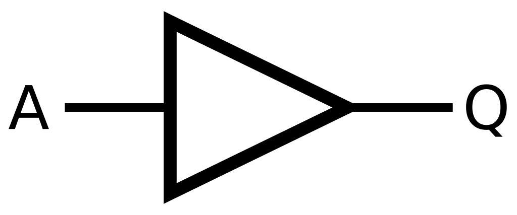 Keywords: Buffer ANSI Labelled.svg A labelled MIL/ANSI symbol for an Buffer A is the input Q is the output Own 2009-01-16 Inductiveload Inkscape 1 Own work all rights released Public domain ANSI logic gates YES gate symbols