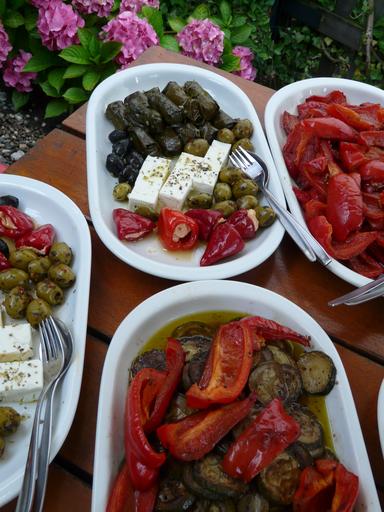 Keywords: buffet salad buffet salads olives paprika feta cheese mushrooms cheese vinegar oil insert inserted starter
