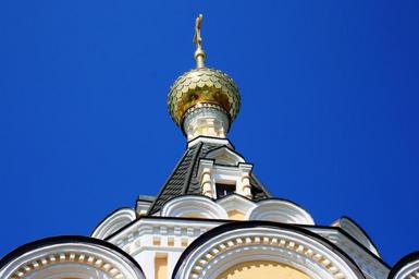 Keywords: building church cathedral religion russian orthodox historic tower spire cupola gold onion dome decorative ornate asian arches sky