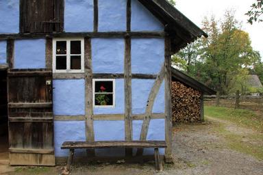 Keywords: building home truss wood blue door window fachwerkhaus
