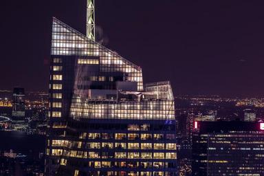 Keywords: building modern contemporary architecture city urban exterior design glass structure downtown construction new skyscraper tower high light night illuminated cityscape tall futuristic steel facade large