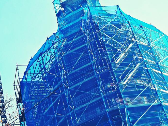 Keywords: building scaffolding site facade architecture scaffold construction work conversion home build renovation rehabilitation work construction expansion repair blue