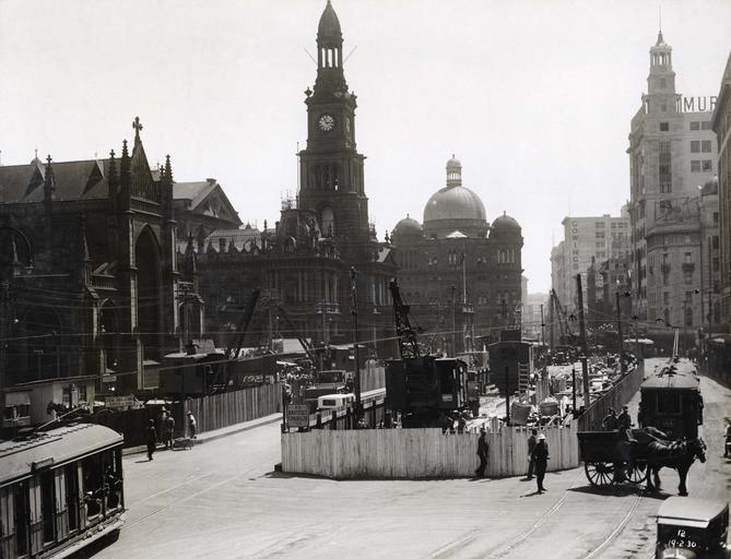 MAKE A MEME View Large Image Many other photos in our collection are available to view and browse on our website using Photo Investigator. George Street during construction of Town Hall Station Dated: 19 February 1930 Digital ID: 12685_a007_a00704_8735000034r Rights: ...
