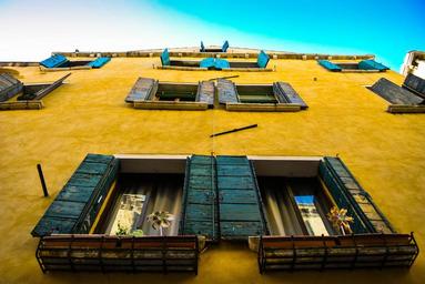 Keywords: building windows architecture venice italy urban exterior wall perspective apartment construction structure shutters rustic historic residence yellow