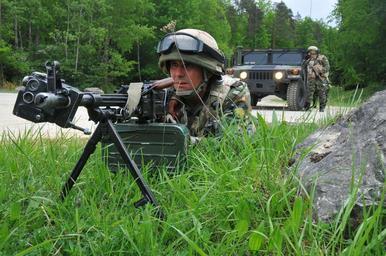 Keywords: Bulgarian soldier with PK, May 2012.jpg en A Bulgarian private moves into a firing position during an Operational Mentor Liaison Team training exercise at U S Army Europe's Joint Multinational Readiness Center in Hohenfels Germany May 12 OMLT and Police OMLT training are designed to prepare teams for deployment to Afghanistan to train advise and enable Afghan forces in areas such as counterinsurgency combat advisory and force enabling support operations Photo by Pfc Jordan Fuller 2012-05-12 11 50 31 http //www flickr com/photos/usarmyeurope_images/7302454808/ US Army Europe PD-USGov Uploaded with UploadWizard Bulgarian Land Forces Hohenfels Training Area |