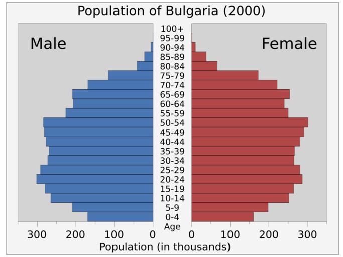 | Keywords: Bulgariapop-2000.svg translate yes en 2000 population pyramid of Bulgaria from UN estimates World Population Prospects http //esa un org/unpd/wpp/Excel-Data/population htm The 2012 Revision 2014-08-09 own Delphi234 cc-zero Uploaded with UploadWizard Population pyramids of Bulgaria |