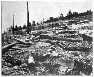 | Keywords: Bulletin 426 Plate XXV B Stone Mountain Quarries GA.jpg  Stone Mountain DeKalb County GA <br>Text from the volume referring to this figure <br> Stone Mountain which is a huge doming ridge of granite Pl XXV A is situated about 16 miles east of Atlanta in DeKalb County It is an elliptical boss with its longer axis trending northeast and southwest and its steepest side facing northward It rises 686 feet above the adjacent lowland plain of crystalline rocks and measures 7 miles in circumference around its base The present ridge is the unreduced remnant of a much larger granite mass The evidence favoring this conclusion is the fact that a belt of the same granite reduced to the general level of the surrounding Tertiary Piedmont plain skirts the north west and south sides of the ridge with a width varying from a quarter of a mile to more than a mile The granite of Stone Mountain and the granite gneiss of the adjacent Lithonia area in the same county have had the widest distribution and are the best known of the Georgia granites outside of the State From the time of their first opening prior to the civil war to within the last few years the quarrying of stone in these two areas formed practically the whole granite industry in Georgia These are the largest granite quarries in Georgia and they yield a much larger output than any other areas in the State Numerous quarries yielding an excellent light-gray granite are worked along the western and southern flanks of the ridge See Pl XXV B The stone has been used most extensively for general building purposes and almost as largely for street material in the form of blocks and curbing Its very light color makes it undesirable for monument stock It has been marketed in the principal towns and cities in the South and West 1910 Granites of the Southeastern Atlantic States Bulletin 426 United States Geological Survey Government Printing Office Washington 1910 Watson Thomas Leonard other versions PD-USGov Stone Mountain Park Georgia Quarries in Georgia U S state |