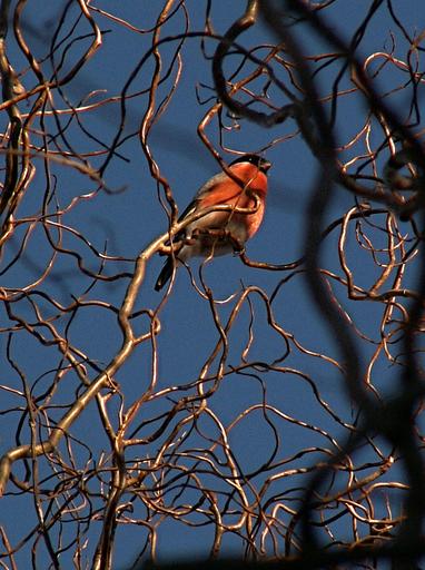 Keywords: bullfinch bird branches twisted willow sky blue vista birds