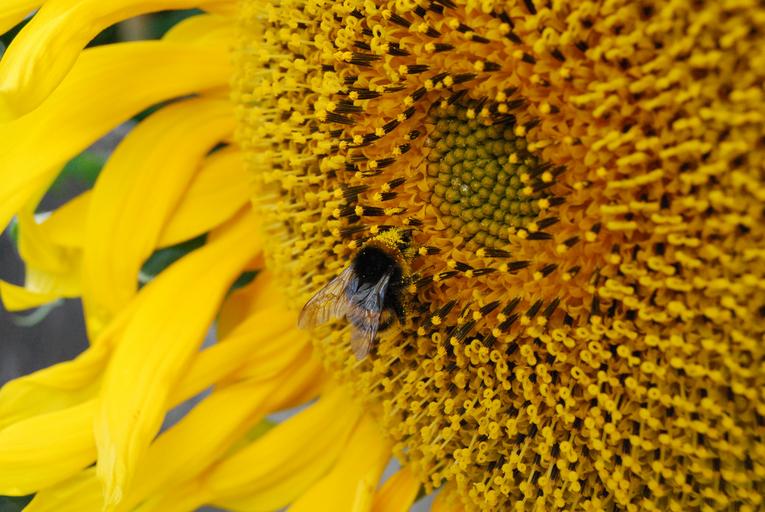 Keywords: bumble bee sunflower spring summer flower yellow bee nature pollen bloom outdoor season sun garden petal
