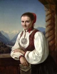 | Keywords: Bunadkledd pike i svalgang.jpg oil canvas cm 81 5 63 5 object history credit line accession number http //digitaltmuseum no/things/bunadkledd-pike-i-svalgang-maleri/NMK-B/NG M 04386 Digitalt Museum PD-Art Paintings by Hedevig T C E Lund Images from Digitalt Museum Norway Paintings in the Nasjonalgalleriet 1849 paintings in Norway National costumes of Norway in portrait paintings Paintings of women of Norway People in three-quarter views in art Women hands 19th-century oil on canvas portrait paintings in Norway |