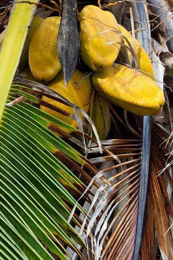 Keywords: bunch coconut coconuts food fresh fruit green grow growing hanging leaves nature palm tree paradise tropical vacation