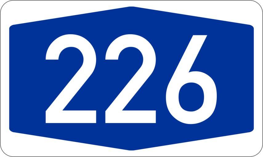 Keywords: Bundesautobahn 226 number.svg Bundesdeutsche Autobahnnummer Automatisch erzeugt durch 3247 German Autobahn number signet Created automatically by 3247 Bundesautobahn numbers 226 226 number