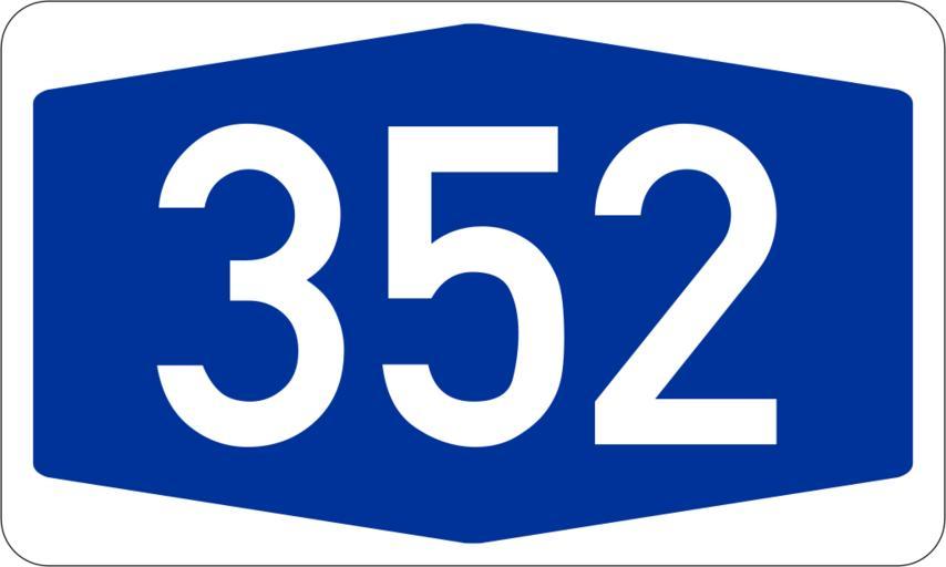 Keywords: Bundesautobahn 352 number.svg Bundesdeutsche Autobahnnummer Automatisch erzeugt durch 3247 German Autobahn number signet Created automatically by 3247 Bundesautobahn numbers 352 352 number Bundesautobahn 352