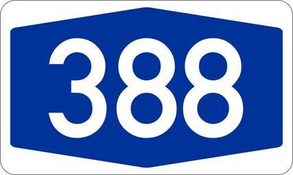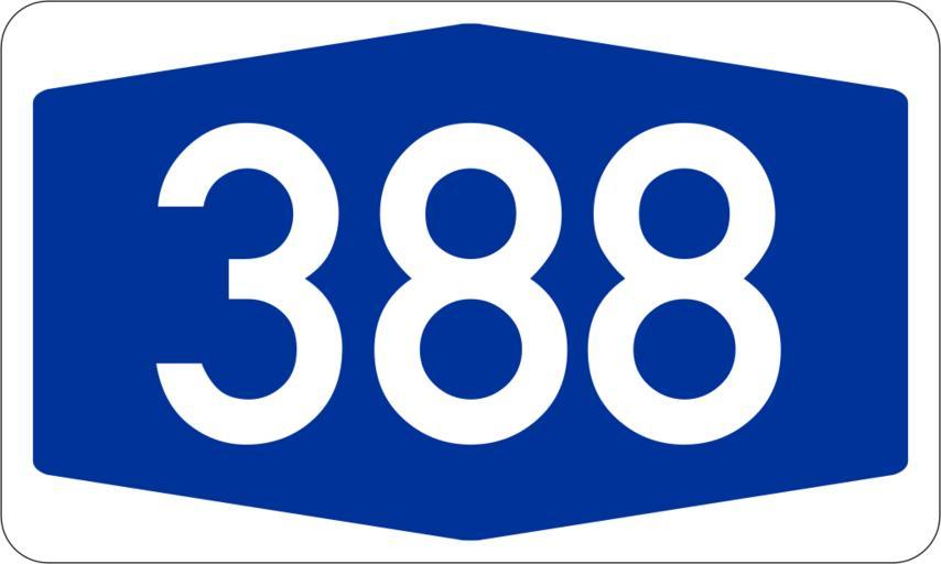 Keywords: Bundesautobahn 388 number.svg Bundesdeutsche Autobahnnummer Automatisch erzeugt durch 3247 German Autobahn number signet Created automatically by 3247 Bundesautobahn numbers 388 388 number