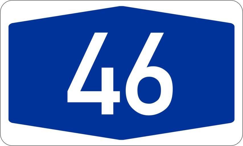 Keywords: Bundesautobahn 46 number.svg Bundesdeutsche Autobahnnummer Automatisch erzeugt durch 3247 German Autobahn number signet Created automatically by 3247 Bundesautobahn numbers 046 46 number