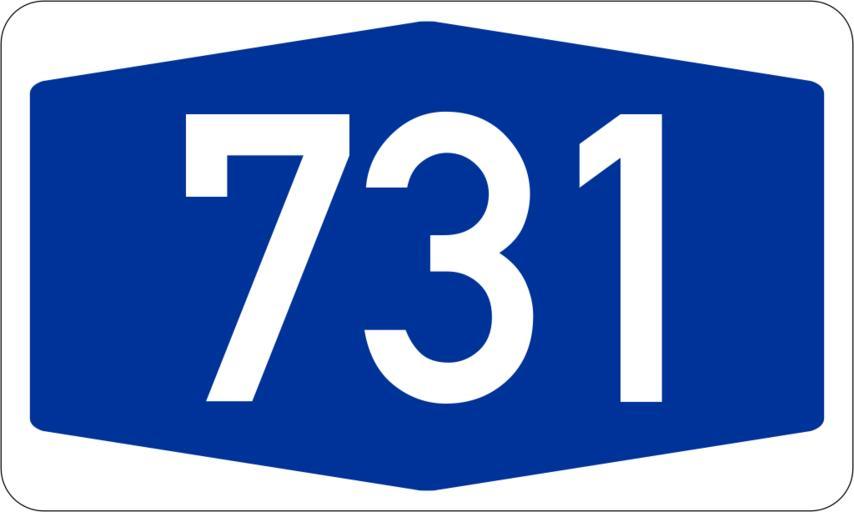 | Keywords: Bundesautobahn 731 number.svg Bundesdeutsche Autobahnnummer Automatisch erzeugt durch 3247 Anmerkung Diese Autobahn existiert nicht war oder ist jedoch geplant Dieses Bild wurde für die Nutzung in Artikeln über die Planung erstellt German Autobahn number signet Created automatically by 3247 Note This road does not currently exist but is or was planned The number sign is supposed to be used in articles about the planned road Bundesautobahn numbers 731 | ||||