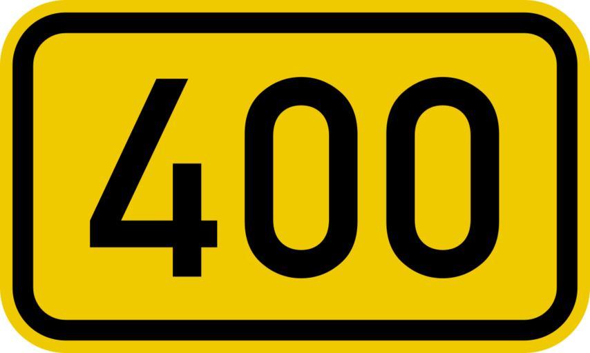 Keywords: Bundesstraße 400 number.svg Bundesdeutsche Bundesstraßennummer Automatisch erzeugt durch 3247 German Federal Road Bundesstraße number signet Created automatically by 3247 Bundesstraßen numbers 400 svg Yellow road signs 400 svg 400 number