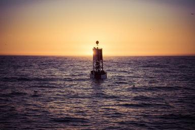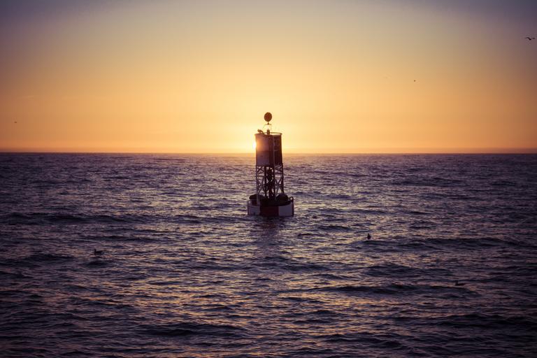 Keywords: buoy sunset ocean water sky sea nature beach horizon orange sun sunlight evening seascape boat vacation nautical