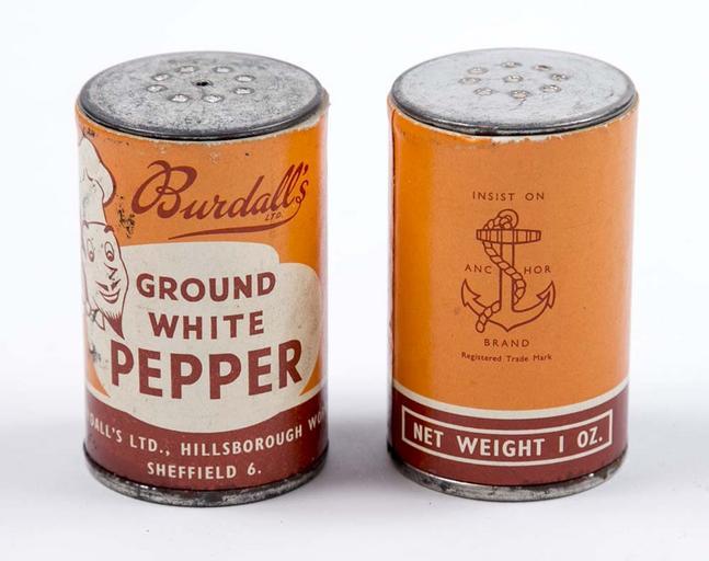 | Keywords: first world war firstworldwar ww1 wor life worlife packaging household colour photograph colourphotograph digital image digitalimage cylinder tin cylindertin burdall's ground white pepper burdallsgroundwhitepepper small holes smallholes label manufactured burdall's ltd burdallsltd sheffield england united kingdom unitedkingdom 1914-18 191418 chef man illustration hat mark display sales retail consumerism anchor rope linear text paper first world war product packaging firstworldwarproductpackaging home front homefront number weight table neutral background neutralbackground product item interesting unusual fascinating industry industrial heritage industrialheritage white background indoor food Burdall's Ground White Pepper tin, cylindrical in form, with nine small holes in the top. Orange, brown and white label. Height: 65 mm Diameter: 41 mm Manufactured by Burdall's Ltd, Sheffield, England, UK, 1914 - 18. Copyright Statement: (Copyright) We're happy for you to share these digital images within the spirit of The Commons. Please cite 'Tyne & Wear Archives & Museums' when reusing. Certain restrictions on high quality reproductions and commercial use of the original physical version apply though; if you're unsure please email sarah.younas@twmuseums.org.uk Burdall's Ground White Pepper tin, cylindrical in form, with nine small holes in the top. Orange, brown and white label. Height: 65 mm Diameter: 41 mm Manufactured by Burdall's Ltd, Sheffield, England, UK, 1914 - 18. Copyright Statement: (Copyright) We're happy for you to share these digital images within the spirit of The Commons. Please cite 'Tyne & Wear Archives & Museums' when reusing. Certain restrictions on high quality reproductions and commercial use of the original physical version apply though; if you're unsure please email sarah.younas@twmuseums.org.uk |