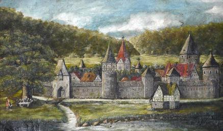 | Keywords: Burg-Elverfeld.jpg de Das Bild befindet sich in der Sammlung des Historischen Zentrums Wuppertal Reproduktion des Gemäldes Burg Elverfeld im 12 Jahrhundert Künstler unbekannt 1700 lt Aufschrift PD-old Wuppertal in art Paintings in the Historisches Zentrum Wuppertal Burg Elberfeld Wuppertal in the 12th century 1700 paintings Wupper in Wuppertal in art Castles of Germany in art 18th-century paintings in Germany | ||||